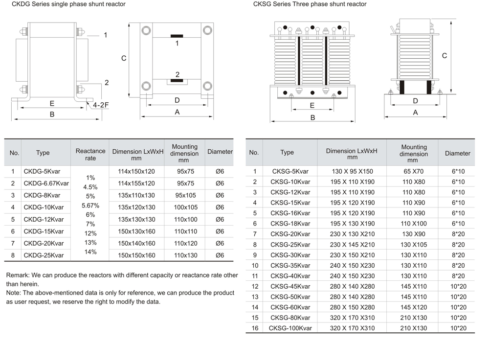 Reactance rate: 1%, 4.5%, 5%, 5.67%, 6%, 7%, 12%, 13%, 14%;