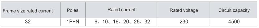 Graded as follows according to the rated current In: 6A, 10A, 16A, 20A, 25A, 32A;