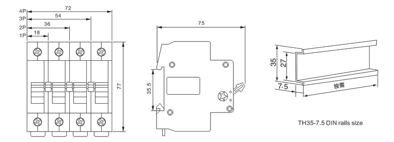 Installation: TH35-7.5 DIN railm the mounting surface and the vertical gradient of not more than 5 °.