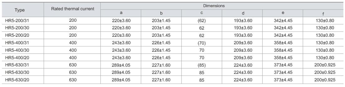 Rated working current: 380V: 100A, 200A, 400A, 630A;