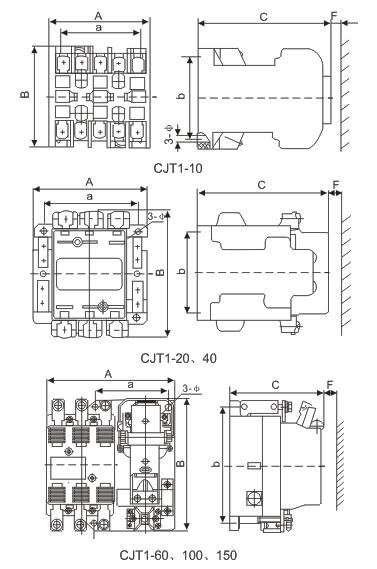 CJT1 series AC contactor (hereinafter referred to ascontactor) is suitable for the power system of AC 50Hzand rated working voltage up to 660V or the power system of rated working current up to 150A at 380Vand rated working current up to 100A at 660V underAC-3 utilization, to make and break circuit in a fardistance, or to frequently start and control AC motor.The contactor can be combined with thermal overloadrelay or electronic protection equipment to form intoan electromagnetic starter, to protect the circuit againstpossible overload. The products are in conformity withsuch standards as GB 14048.4 and IEC 60947-4-1.