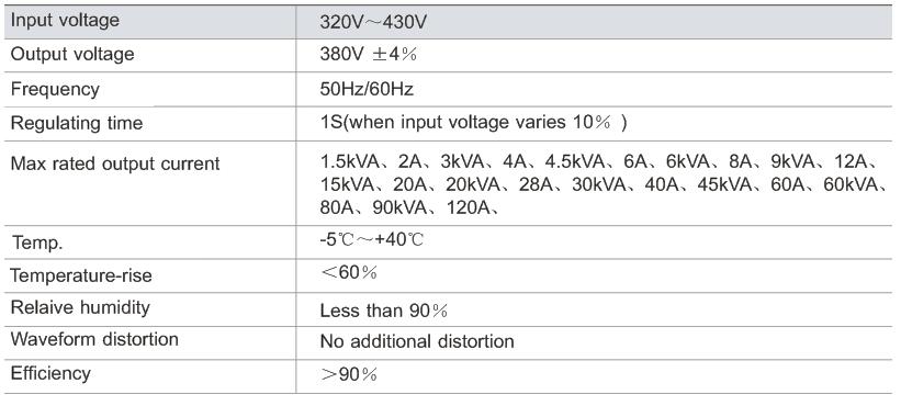 This product is constructed by connecting the three pieces of high accuracy full-automaatic AC voltage stabilizers with Y connection method, has the advantage of: