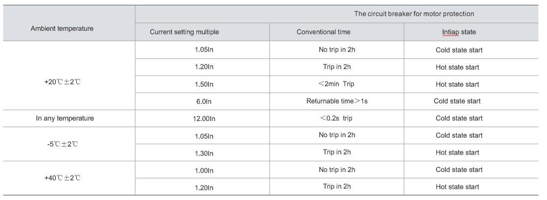 Inverse time lag characteristics of circuit breaker for motor protection