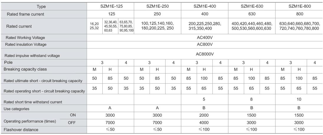 SZM1E series Molded Case Electronic Circuit Breaker (hereafter referred to as simply breakers) are one of the new type breakers which have been developed by the company using international advanced design and manufacturing technology. The rated insulation voltage of the breakers is 800V, suitable for turn-on or turn-off not frequently and starting a motor not frequently in the circuit of AC50Hz, rated working voltage 690V or below rated working current up to 800A. The breakers have overload, short-circuit and under voltage protection devices. so as to protect the circuit and the power equipment against damage.Short circuit short delay time definite time, short circuit instantaneous and undervoltage protection function and residual current protection (optional), phase failure protection function (optional), can short-circuit short delay time inverse time, Protection circuit and power equipment from damage, circuit breaker protection features complete, accurate, can improve the reliability of power supply, to avoid unnecessary power outages, including "Z, B" type control with communication interface can be "four remote" Meet the requirements of control centers and automation systems.