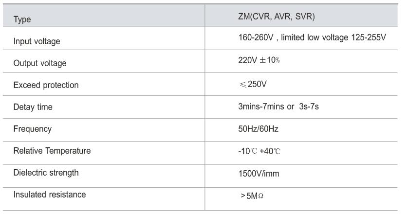 ZM(CVR、AVR、SVR) series stabilizer, it adopt double sampling, double stabilize, time base integration for delay of advance electric auto-control electricity. The machine has sensitive action, timing accuracy, stabilization capability, safety and power save, beautiful appearance, easy to use etc. It use in computer,test equipment, lighting equipment, Industrial automation equipment, family appliance and  hi-fi equipment.