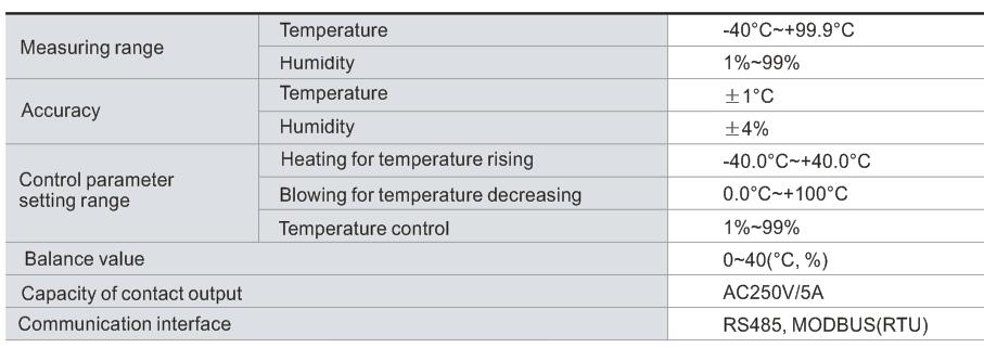 Intelligent temperature and humidity controller with security temperature and humidity sensors, digital tube display temperature and temperature values, with fans, heater contacts, and heater break alarm, sensor fault indication method and other functions. Products can also be equipped with RS485 communication interface or alarm switch output, for the realization of environmental temperature and humidity values and working parameters to the host computer remote transmission, suitable for unattended substation requirements. Users can set any temperature, humidity, upper and lower limits, cycle display mode, communication parameters, etc. through the key programming. Anti-interference ability of products, high reliability, in line with GB / T15309-1994 standards.