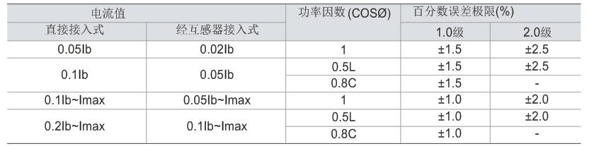 在額定電壓、額定頻率及功率因數(shù)為1.0的條件下,當電能表負載電流為下表規(guī)定值時,電能表應能起動并連續(xù)計量電能。