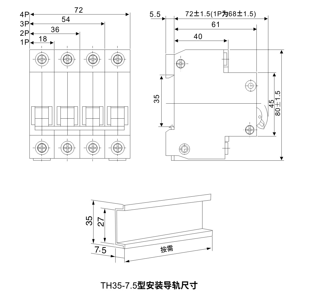 按額定電流In分:1A、3A、6A、10A、16A、20A、25A、32A、40A、50A、63A。