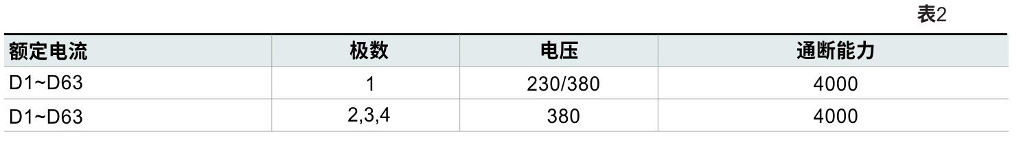 額定運行短路分斷能力(見表1、表2);
