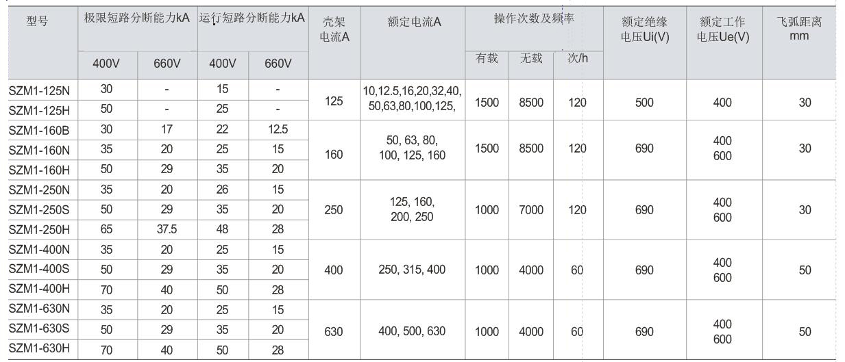 SZM1(NS)系列電子式塑料外殼式斷路器適用于交流50Hz,額定電流從10A至630A,額定絕緣電壓為690V(Inm=125A的為550V),額定工作電壓660V(Inm=125A的為400V)及以下的電路中,在配電網(wǎng)絡(luò)中分配電能及作為線路和電氣設(shè)備的過載,短路保護(hù)之用,在正常情況下斷路器也可作為線路的不頻繁轉(zhuǎn)換之用,殼架等級(jí)電流400A及以下的斷路器亦可作為保護(hù)電動(dòng)機(jī)的不頻繁起動(dòng)之用。