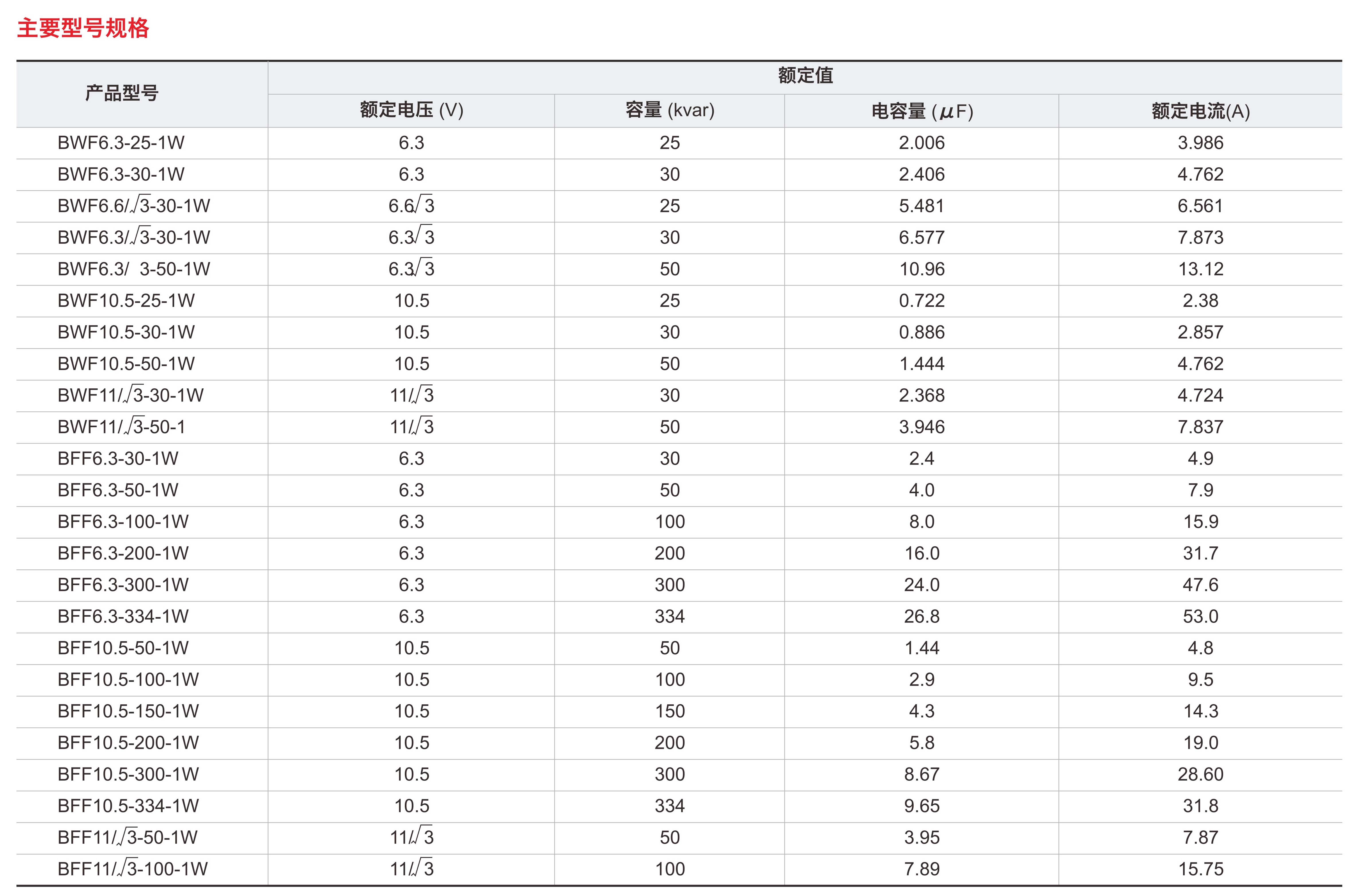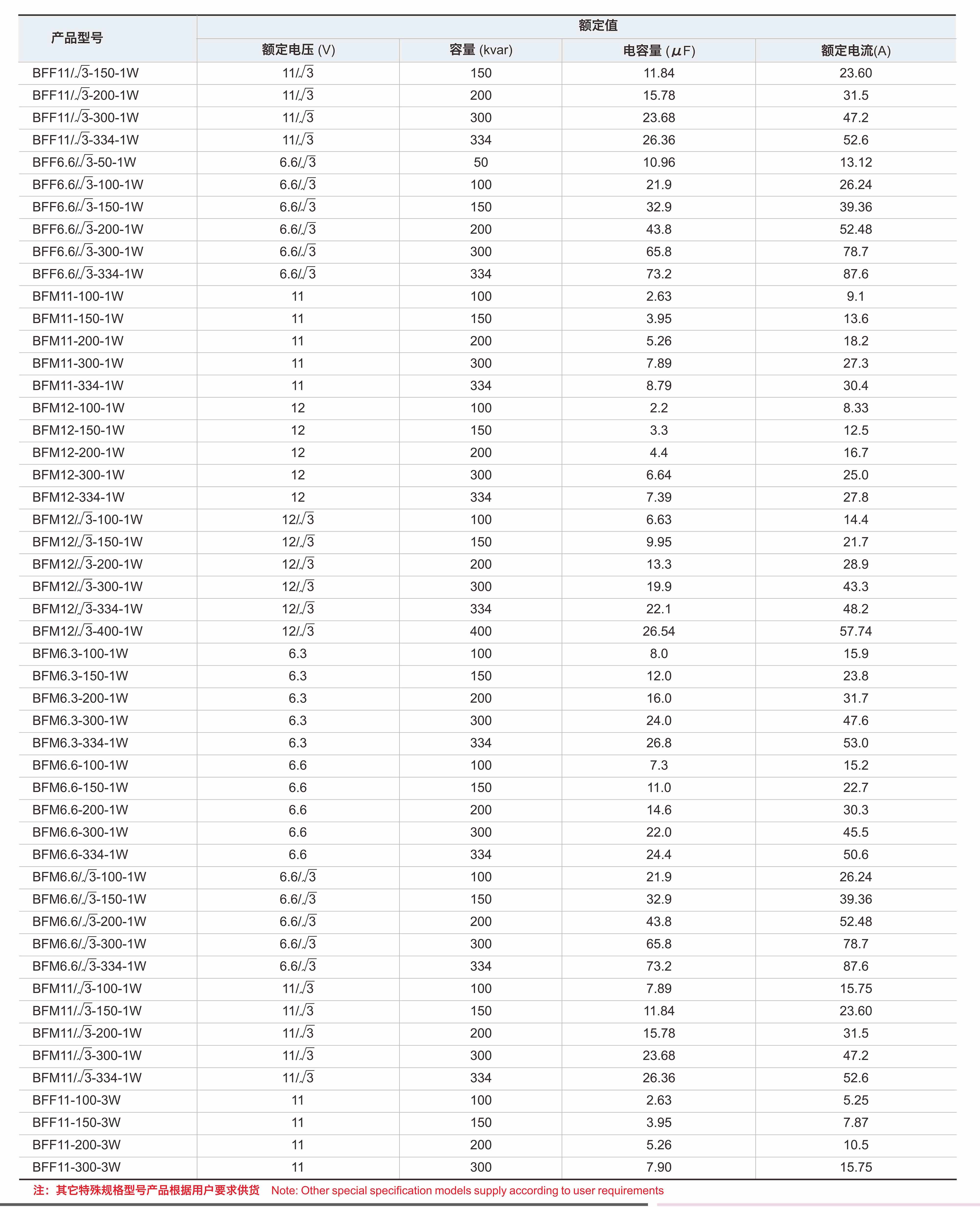 額定容量:30~334kvar,其它電壓等級和容量可特殊定貨。