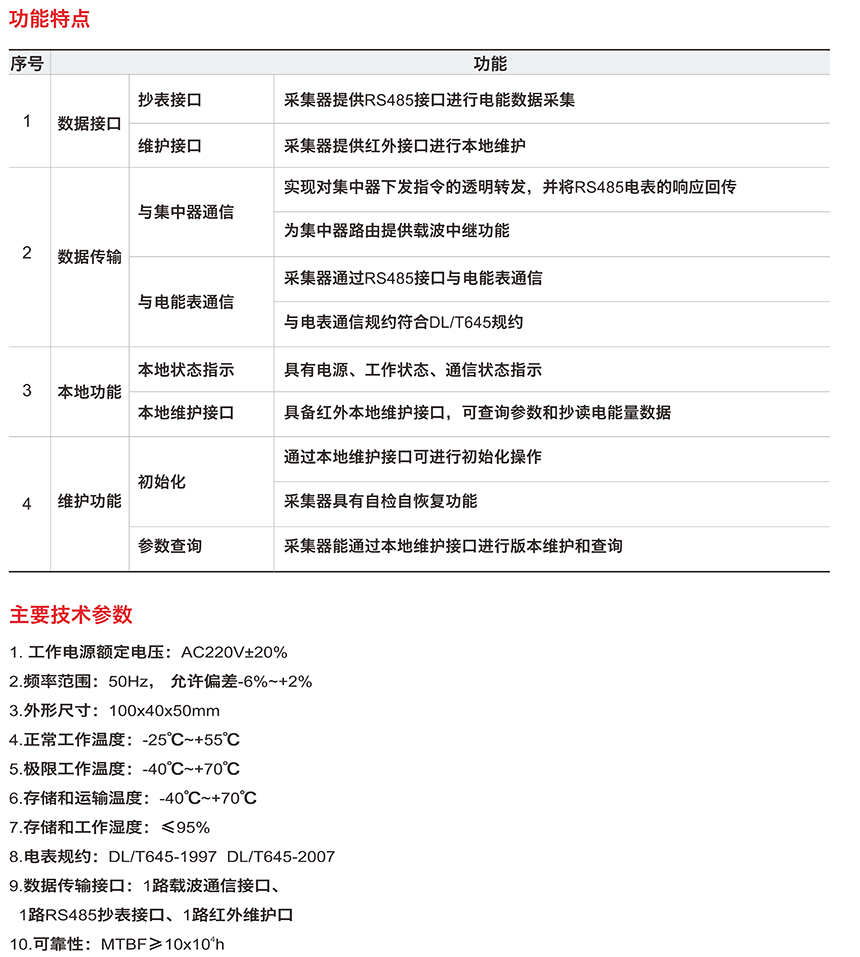 DCZL23-ZM10型采集器是低壓電力線載波集中抄表系統(tǒng)的重要組成部分。該采集器符合國(guó)家電網(wǎng)公司Q/GDW1375.3-2013、Q/GDW1374.2-2013等《電力用戶用電信息采集系統(tǒng)》系列標(biāo)準(zhǔn),應(yīng)用現(xiàn)代數(shù)字通信技術(shù)、計(jì)算機(jī)軟硬件技術(shù)、低壓電力線載波技術(shù)等進(jìn)行電能量采集。該采集器電磁兼容性能優(yōu)良,溫度適應(yīng)范圍廣,電壓適用范圍寬,可以查詢和修改設(shè)備參數(shù);采集器外殼采用ABS阻燃材料,壁掛式?結(jié)構(gòu)設(shè)計(jì),體積輕巧,安裝方便。