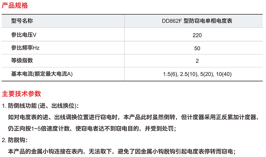 該儀表系本公司研制開發(fā)的一種在一只感應(yīng)式電度表上,具有多種防竊電功能的單相交流有功電度表,使用該表時性能與DD862電度表相同,并且接線線路完全與DD862電度表一致,維修和使用方便。技術(shù)參數(shù)與DD862相同。
