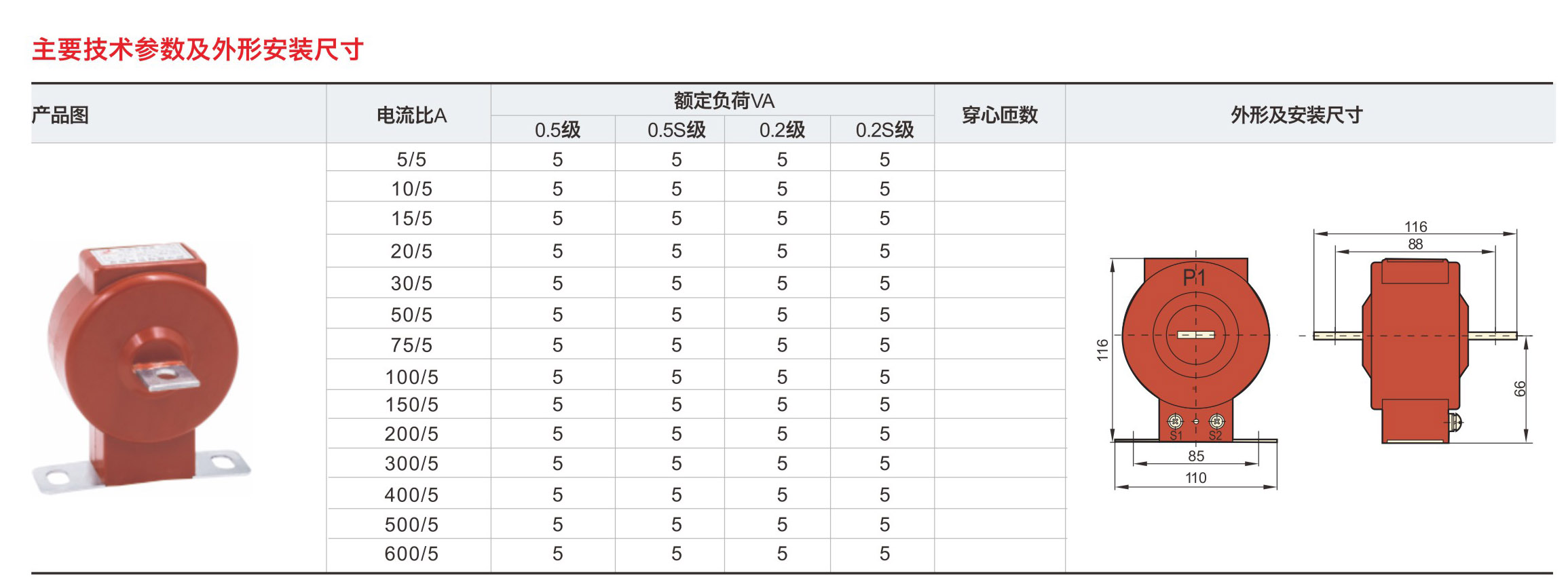 訂貨代號為LMZJ1-0.5實心 ?150/5A ?5VA ?0.5級。
