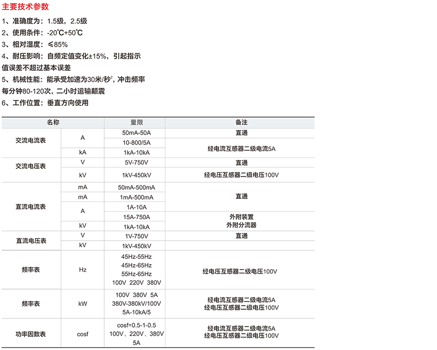 安裝式電工儀表是用途很廣的直接作用模擬指示電測儀表、適用于直流電路和工頻交流電路測量:電壓、電流、頻率、功率因素以及同步指示等電量參數(shù),安裝板表固有的優(yōu)點是可以顯示被測電量的變化趨勢,除單獨使用外,主要是為了各高、低電壓開關(guān)柜,電源柜、控制柜以及各種電控裝置、做儀表盤配套使用,產(chǎn)品各項指標符合GB/T7676-1998國家標準技術(shù)要求。塑料或膠木外殼、大窗口、廣視角,造型簡潔明快、美觀大方。