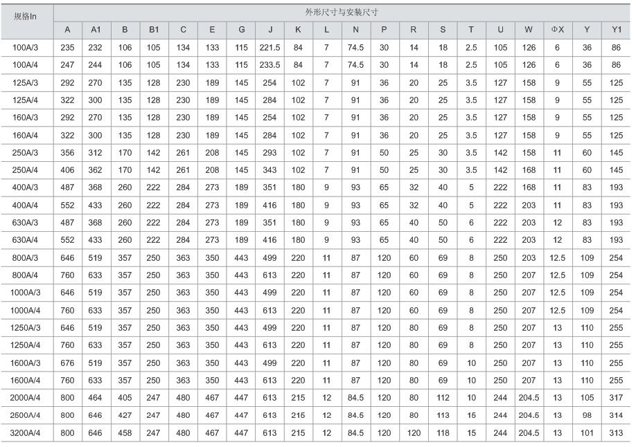 額定工作電流(Ie):10~3200A;