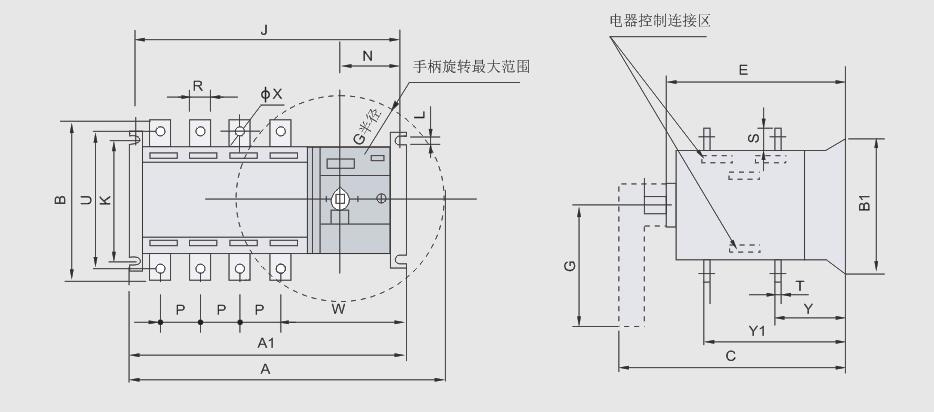 自動(dòng)轉(zhuǎn)換開(kāi)關(guān)(ATSE),是集開(kāi)關(guān)與邏輯控制于一體、真正實(shí)現(xiàn)機(jī)電一體化的自動(dòng)轉(zhuǎn)換開(kāi)關(guān),它適用于交流50Hz、額定電壓AC400V、約定發(fā)熱電流至1600A的工企業(yè)配電設(shè)備中,具有電壓檢測(cè)、強(qiáng)制置“0”、緊急手動(dòng)操作,廣泛應(yīng)用于供電系統(tǒng)的主用電源與備用電源的自動(dòng)轉(zhuǎn)換或兩臺(tái)負(fù)載設(shè)備的自動(dòng)轉(zhuǎn)換及安全隔離等。開(kāi)關(guān)由控制線路板發(fā)出各種邏輯命令來(lái)管理電機(jī),由電機(jī)帶動(dòng)開(kāi)關(guān)主體部分的操作機(jī)構(gòu),快速接通分?jǐn)嚯娐坊蜻M(jìn)行電路轉(zhuǎn)換,通過(guò)明顯可見(jiàn)狀態(tài)實(shí)現(xiàn)安全隔離。