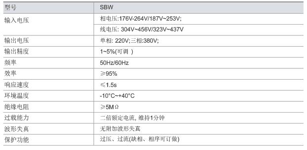 SBW三相全自動(dòng)補(bǔ)償式電力穩(wěn)壓器是適用于當(dāng)外界的供電網(wǎng)絡(luò)電壓波動(dòng)或負(fù)載變化而造成電壓波動(dòng)時(shí),能自動(dòng)保持輸出電壓穩(wěn)定。本系列產(chǎn)品與其它型式的穩(wěn)壓器相比,具有容量大、效率高、無(wú)波形畸變、電壓調(diào)節(jié)平穩(wěn)等優(yōu)點(diǎn),適用負(fù)載廣泛,能承受瞬時(shí)超載,可長(zhǎng)期連續(xù)工作,手動(dòng)/自動(dòng)切換,設(shè)有過(guò)壓保護(hù)、缺相、相序保護(hù)及機(jī)械故障自動(dòng)保護(hù),本機(jī)體積小,重量輕,使用安裝方便,運(yùn)行可靠等優(yōu)點(diǎn)。(分?jǐn)?shù)顯、儀表指示兩類)。