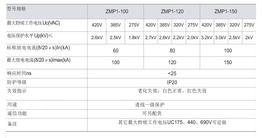 ZMP1系列電涌保護器(以下簡稱SPD)適用于TT、TN-C、IT等供配電系統(tǒng)三相電源的B級電涌保護。該產(chǎn)品采用一體的設(shè)計,其保護模式有L-PE/N-PE、L-N/N-PE兩種。具有通流容量大、殘壓低等特點;保護器本體具有熱脫離告警功能,可根據(jù)用戶要求增加遙信接點。