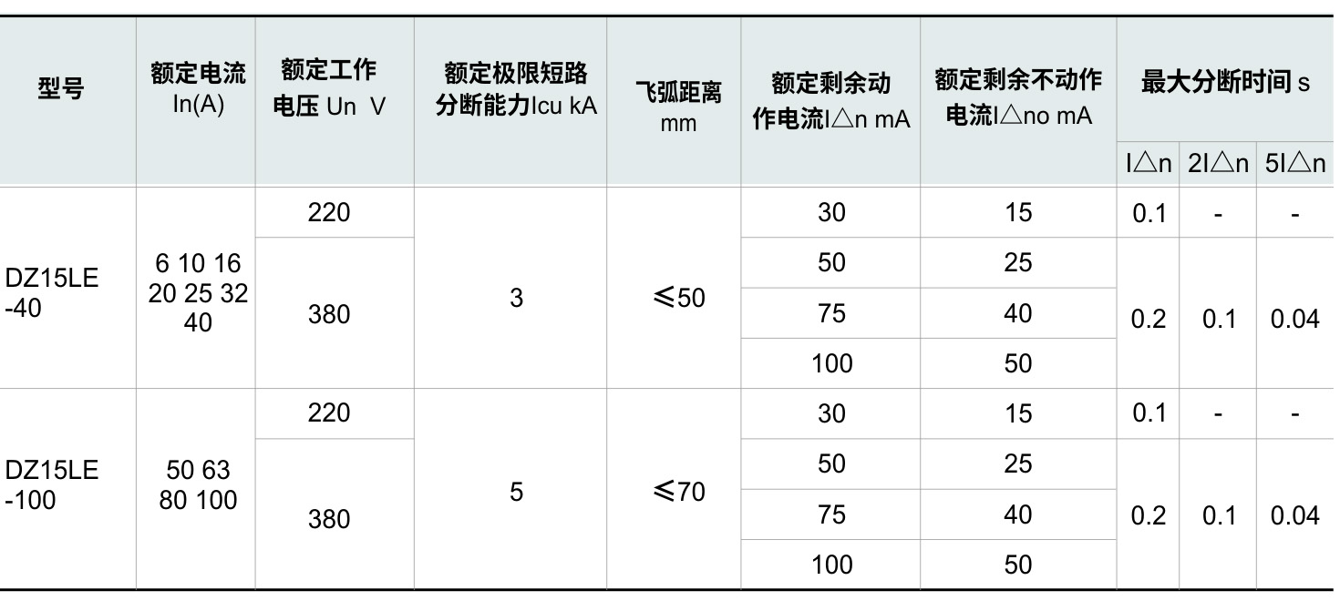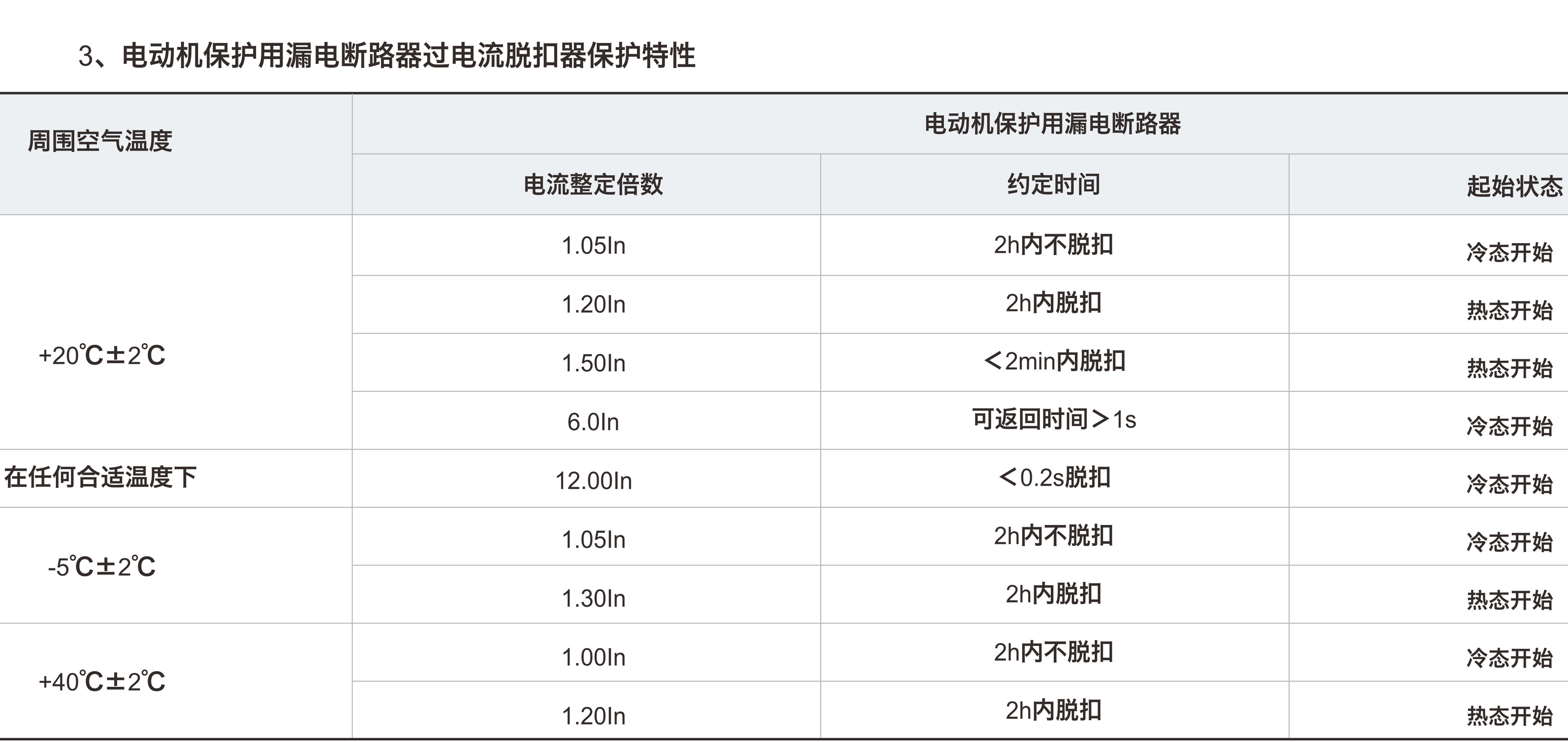 配電保護(hù)用漏電斷路器過電流脫扣器保護(hù)特性