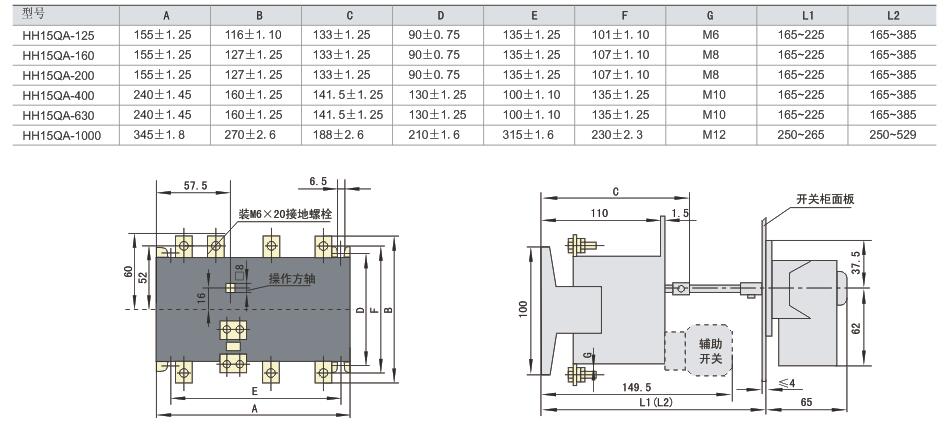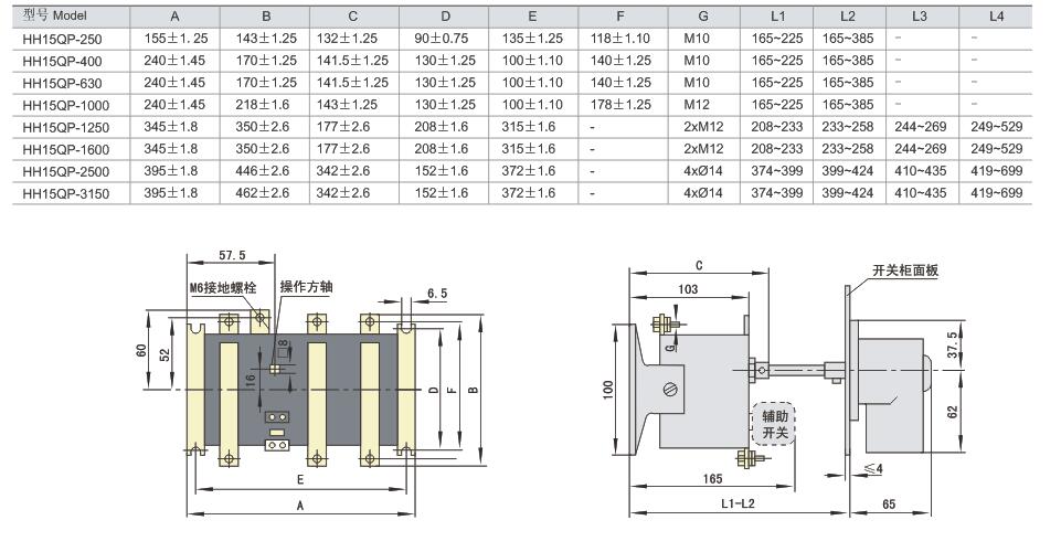 HH15QSA-160~400, QA-400~630, QP-400~1000,四極外形尺寸?