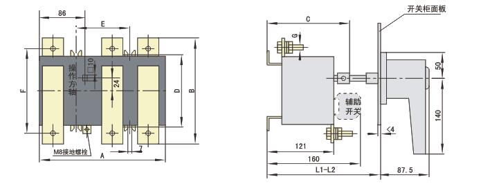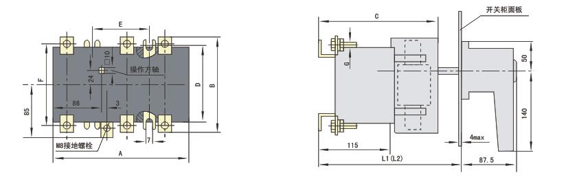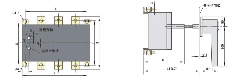 面板開孔是為了固定操作手柄底座之用,其尺寸與對(duì)應(yīng)開關(guān)規(guī)格關(guān)系